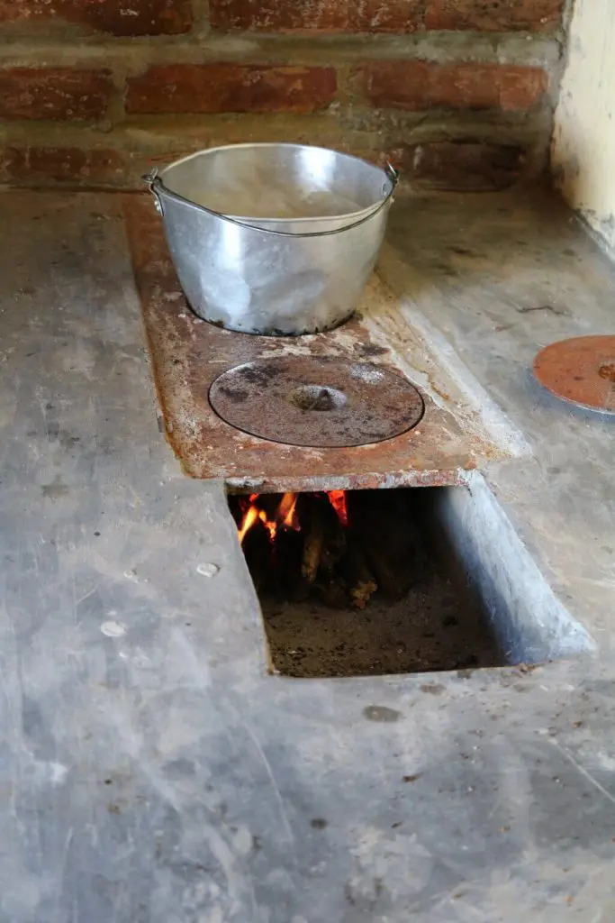 O fogão funciona com uma câmara de combustão que aquece uma chapa de metal onde as panelas são apoiadas e tem um forno integrado. Todo o calor é aproveitado e a fumaça sai por uma chaminé externa. Saiba mais sobre o funcionamento dessa tecnologia social na Cartilha Mulheres na Caatinga, da Casa Mulher do Nordeste.