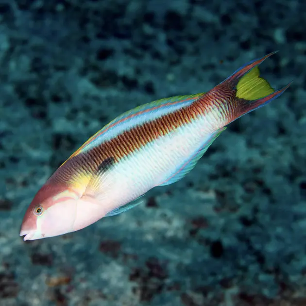 O bodião Thalassoma sanctahelenae é outra espécie endêmica encontrada em Ascensão e Santa Helena – Foto: Cedida pela autora