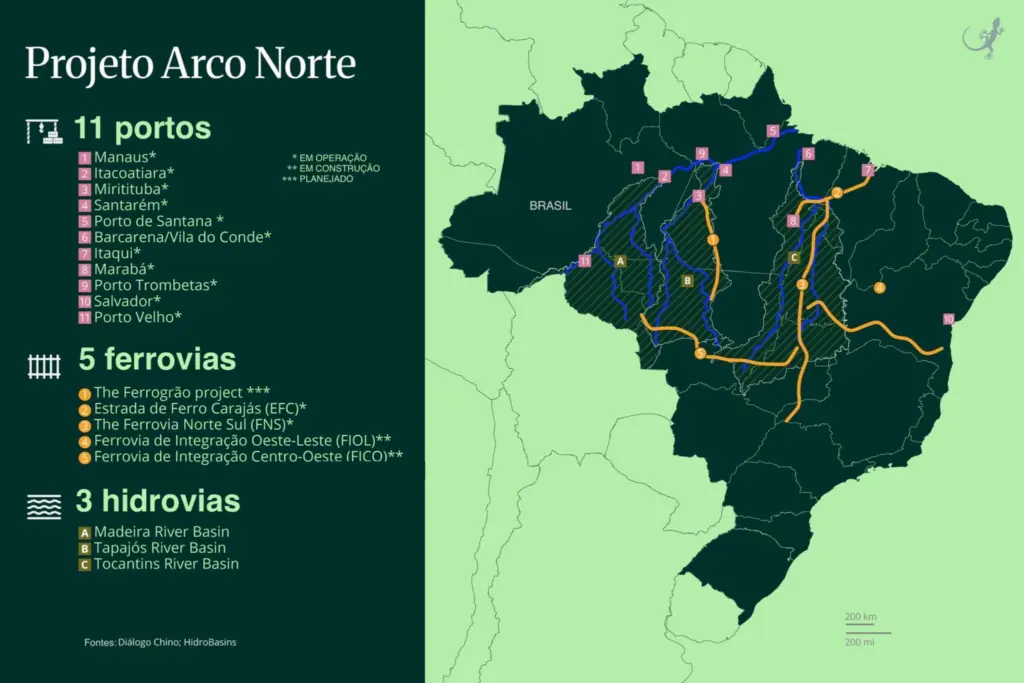 O Estudo de Viabilidade Técnica, Econômica e Ambiental para a concessão da hidrovia do Tapajós está em andamento e deve ser concluído no início do próximo ano. Mas, devido aos baixos níveis do rio por conta da seca de 2024, o Departamento Nacional de Infraestrutura de Transportes (DNIT) realizou uma dragagem de emergência em fevereiro de 2025 para garantir a passagem das balsas carregadas com commodities – uma medida solicitada pelos exportadores.